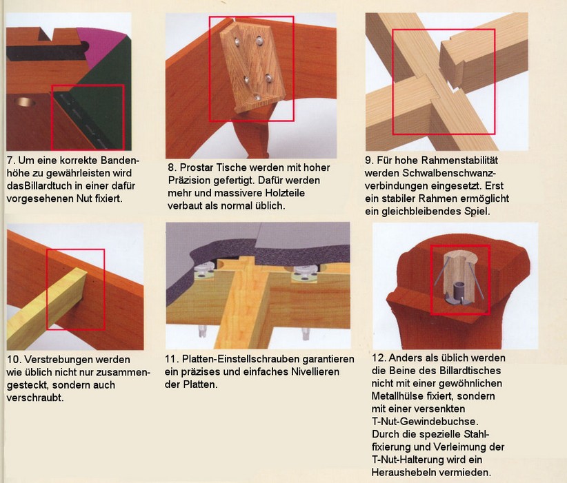 Dieser Billardtisch wird gefertigt aus solider europäischer roter Scheinbuche. Alle Tisch-Elemente sind aus solidem Holz